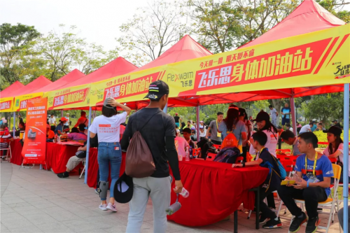 Flexwarm飞乐思在顺德线的君兰河岸公园设置了“飞乐思”身体加油站,免费让市民体验飞乐思的护膝带、护腰带、护颈带等产品。源自军工的发热技术,护具能够在短短10秒内迅速发热,发热的同时,还能释放远红外光波,精确按摩每个穴位,改善关节疼痛,调节自律神经,起到消炎镇痛的作用。 试用过的市民表示:“用了15分钟整个感觉轻松很多,完成50公里没有问题!”